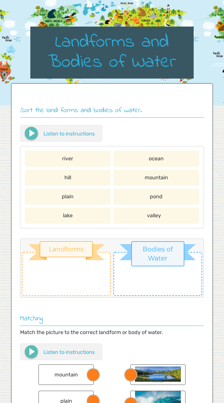 Landforms Matching Worksheet / Landforms Geographical Features Esl Worksheet By Julic -. Matching landforms matching landforms to description. Are you a teacher or homeschooler looking for a worksheet to evaluate your grade 3 students on landforms? Students cut the picture and match the picture to the word. Browse landforms matching resources on teachers pay teachers,. Why pay for resources when you can .